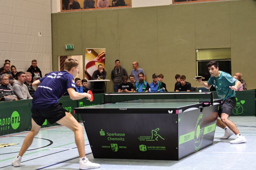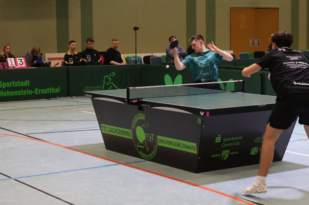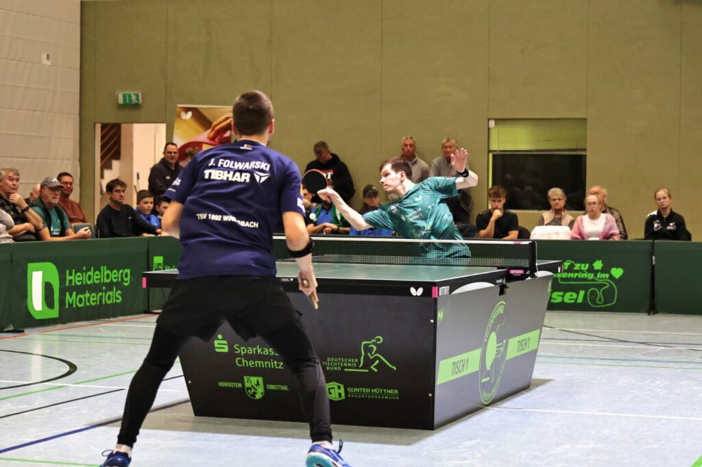 „Heute Abend brauche ich definitiv keinen „Tatort“ mehr. Dieses Match war Krimi genug“ war von einem begeisterten Zuschauer nach dem Heimspiel des TTC Sachsenring gegen das Team aus Mittelfranken zu hören. Was die 227 Zuschauer in der Sporthalle des BSZ in Limbach-Oberfrohna geboten bekamen, war ein Wechselbad der Gefühle und an Dramatik und spannungsgeladenen Momenten kaum noch zu überbieten. Dabei begann die Partie für die Hausherren mehr als unglücklich. Sowohl Byunghyeon Kim/Andrey Milovanov als auch Miguel Nunez Tapia/Karl Zimmermann mussten sich jeweils im fünften Satz mit 8:11 bzw. 9:11 knapp geschlagen geben. Bojan Tokic erhöhte mit seinem Sieg gegen Kim auf 3:0 für Windsbach. Großen Kampfgeist zeigte Carlos Andres Mühlbach gegen Tom Fabian Schweiger und durch seinen ersten Saisonsieg verkürzte er zur Pause auf 1:3.