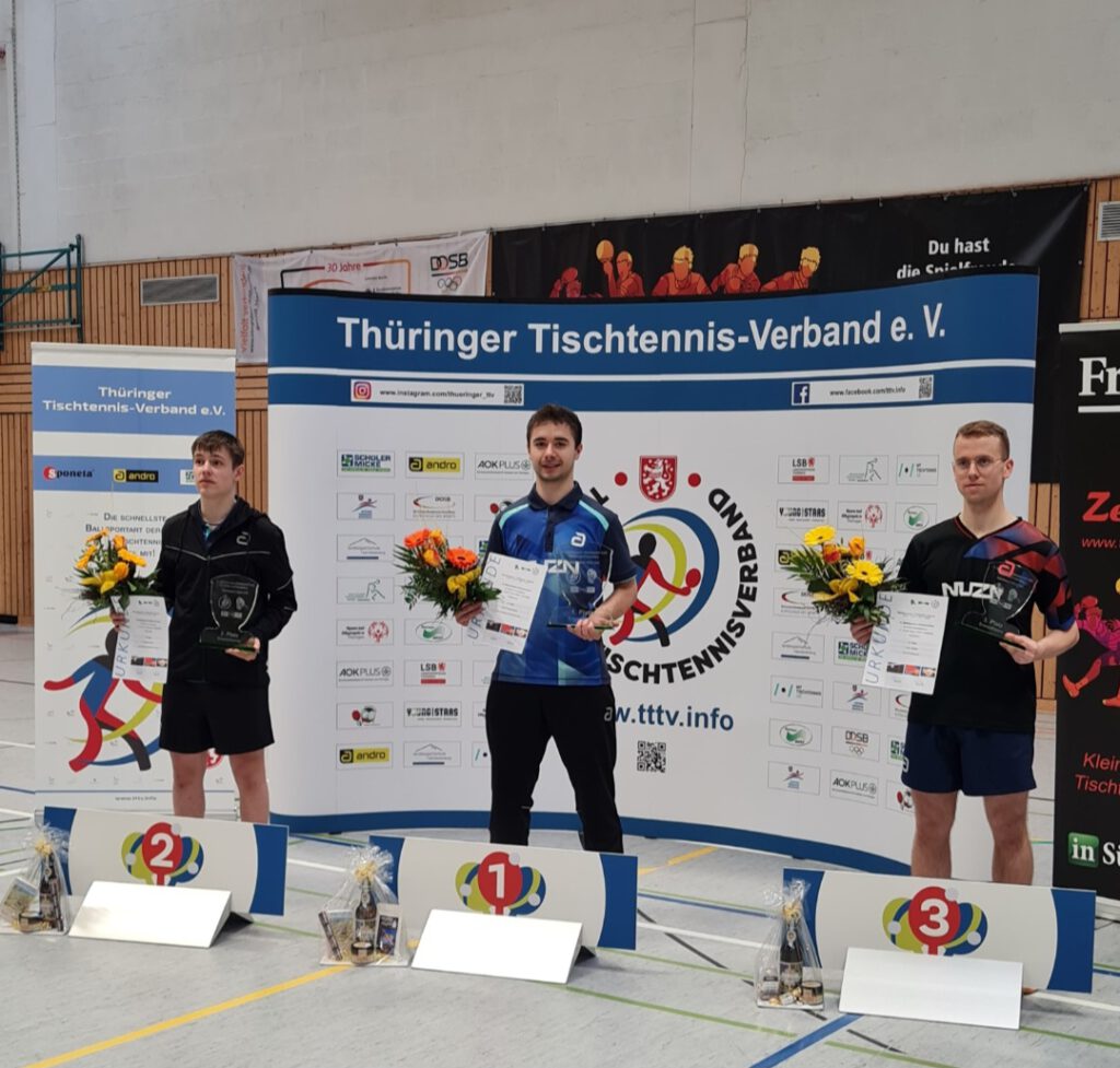 Überragendes Abschneiden der Spieler des TTC Sachsenring bei den Mitteldeutschen Meisterschaften – Karl Zimmermann holt sich ohne Niederlage den Titel und Vereinskamerad Onufrii Hoian belegt den zweiten Platz. In Zella-Mehlis kämpften die jeweils besten Aktiven aus Sachsen-Anhalt, Thüringen und Sachsen um die Meisterpokale und Podestplätze. In zwei Vorrundengruppen wurden die Endrundenteilnehmer ermittelt. Zimmermann und Hoian belegte in ihre Gruppe jeweils Platz 1 und zogen in die Endrunde ein. Johannes Faltermaier (TTC Sachsenring) schaffte es mit Platz 6 nicht ins Finalfeld. Auch gegen die drei Erstplatzierten der Gruppe B blieb „Kalle“ ohne Niederlage und wurde souverän Mitteldeutscher Meister. „Ich freue mich wie Bolle über den zweiten Platz und noch mehr, dass ich mit Karl zusammen die Qualifikation für die Deutschen Meisterschaften geschafft habe“. Diese finden vom 4.-7. Juni innerhalb der Finals in Erfurt statt. Während es für den 17Jährigen Hoian eine Premiere ist, startet Zimmermann bereits zum dritten Mal bei den deutschen Titelkämpfen.