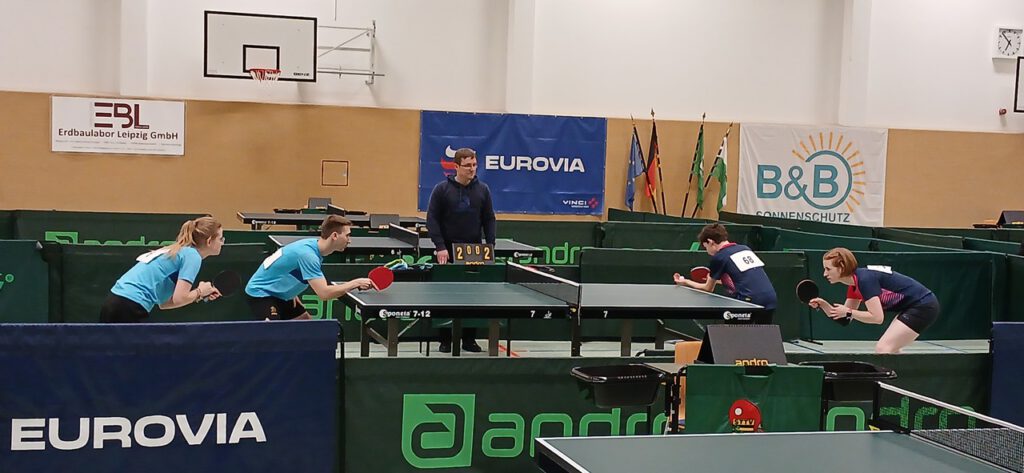 Zwei Landesmeistertitel und zwei Vizemeistertitel sind die sehr erfolgreiche Bilanz der Aktiven des TTC Sachsenring bei den Landeseinzelmeisterschaften der Damen und Erwachsenen. In Borsdorf traten die besten 36 Damen und 48 Erwachsenen des Sächsischen Tischtennisverbandes in fünf Wettbewerben an, um die Sieger und Platzierten zu ermitteln. Im Mixed-Doppel schafften es Mary-Ann Staffa und Nick Neumann-Manz bis ins Endspiel. Erst hier mussten sie sich Ann-Kathrin Flemming und Paul Flemming knapp mit 2:3 geschlagen geben.