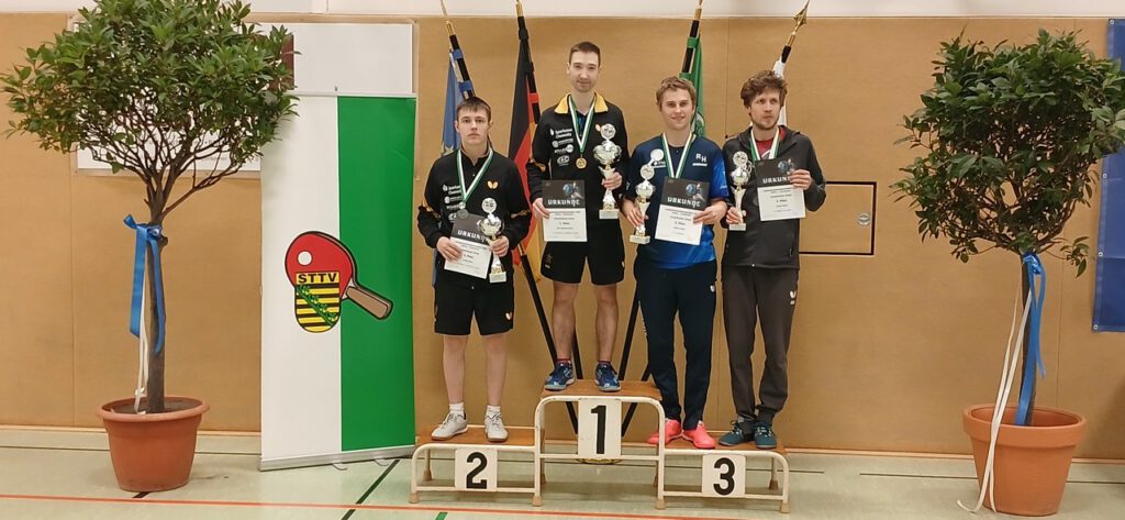 Mit Nick Neumann-Manz, Onufrii Hoian und Johannes Faltermaier qualifizierten sich drei Aktive des TTC Sachsenring im Einzel der Erwachsenen für die Endrunde. Faltermaier schaffte es bis in die Runde der letzten Acht, schied aber nach einem 0:4 gegen Robert Mayan aus. Nick Neumann-Manz und Onufrii Hoian standen nach zwei weiteren Siegen beide im Halbfinale. In dramatischen Begegnungen setzte sich Neumann-Manz knapp mit 4:3 gegen Mayan durch und auch Hoian war in sieben Sätzen gegen Robert Haufe (TTC Holzhausen) erfolgreich. Das Finale der beiden TTC-Akteure dominierte „Quick Nick“ deutlich und mit einem 4:1-Sieg sicherte er sich damit zum achten Mal den Titel im Einzel der Erwachsenen. Mit zwei Gold-und einer Silbermedaille war Nick Neumann-Manz zugleich der erfolgreichsten Spieler dieser Landeseinzelmeisterschaft.