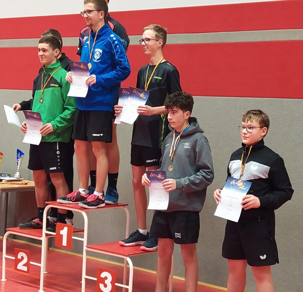 Eine Gold- und zwei Bronzemedaillen haben die Aktiven des TTC Sachsenring bei den Bezirkseinzelmeisterschaften der Jugend13 und 19 in Treuen erkämpft. Bezirksmeister im Einzel wurde Toni Walther, der ohne Satzverlust seine Vorrundengruppe gewann. Nach zwei weiteren 3:0-Siegen bezwang er im Halbfinale Max Marschner (SV Stenn) mit 3:2 und nach einem 3:1-Erfolg über Bastian Grimm (SV MT Wilkau-Haßlau) hatte er Gold sicher. Max Ließke und Oliver Schneider erreichten ebenfalls die Hauptrunde, schieden aber im Viertel-bzw. Achtelfinale aus. Im Doppel sicherte sich Max Ließke mit Moritz Anhut (TSV Elektronik Gornsdorf) den dritten Platz. Walther/Schneider schieden gegen die späteren Sieger Schreiter/Grimm (Pobershau/Wilkau-Haßlau) aus. Bei den Mädchen U19 gelang Tamara Lemke der Einzug in die Hauptrunde, schied aber in der Runde der letzten Acht gegen Nilufar Rudolf (TV Ellefeld) mit 1:3 aus. Gemeinsam mit Lara Schubert (SV Großolbersdorf) gewann sie im Doppel die Bronzemedaille.